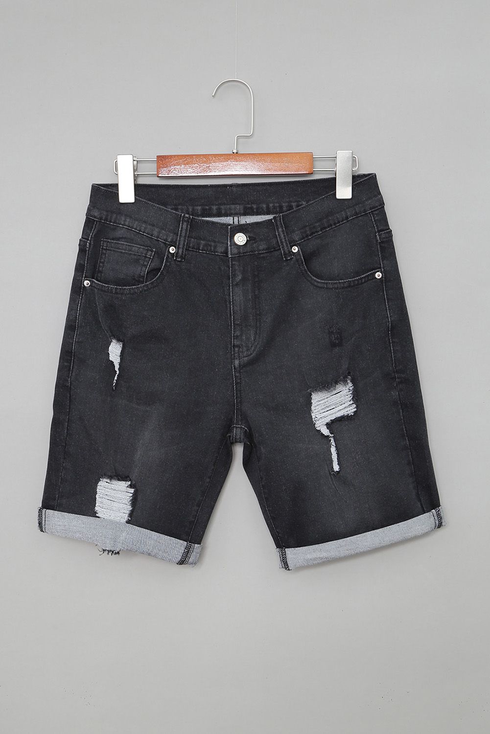 Black Distressed Low-rise Men's Denim Shorts