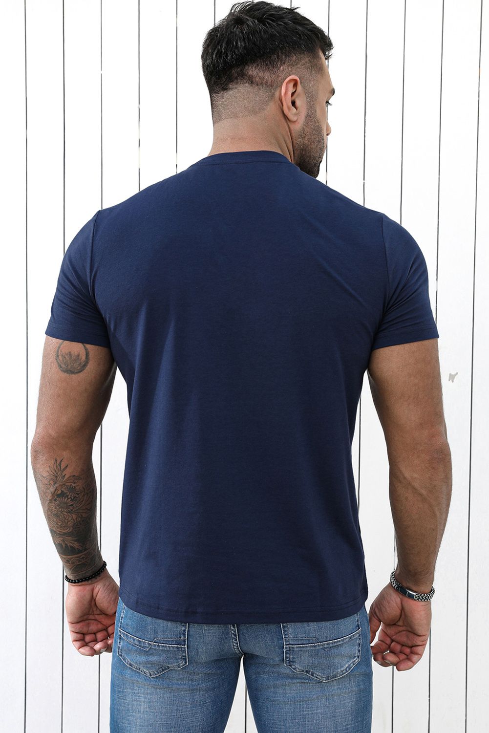 Blue Letters Pattern Print Muscle Fit Short Sleeve Men's T Shirt