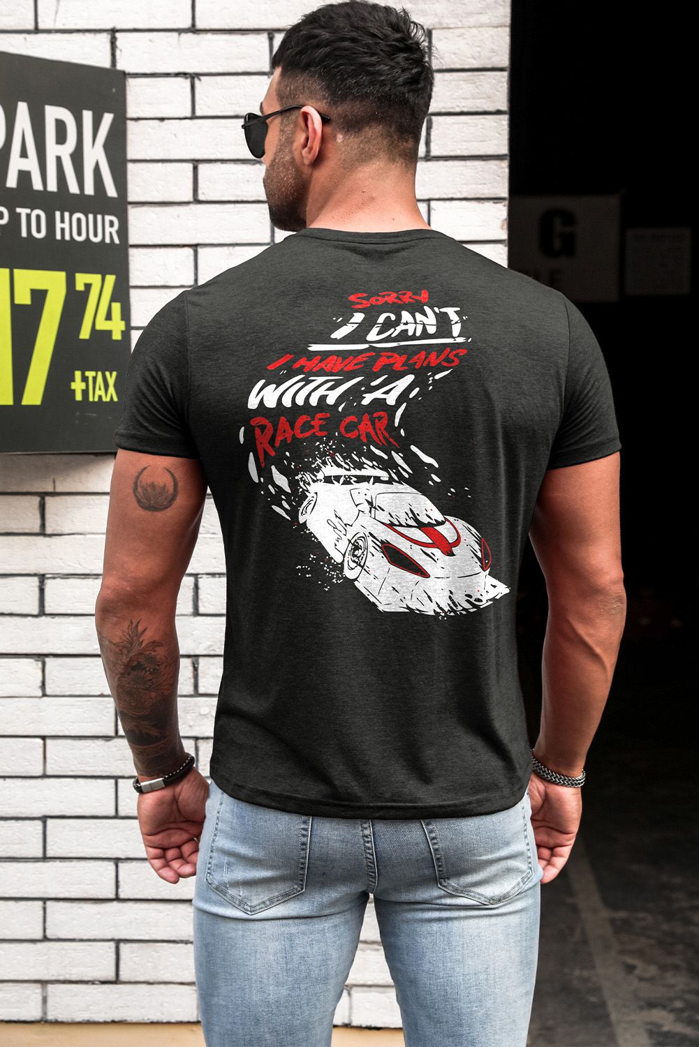 Gray Racing Vehicle Letter Print Slim Fit Men's Graphic Tee