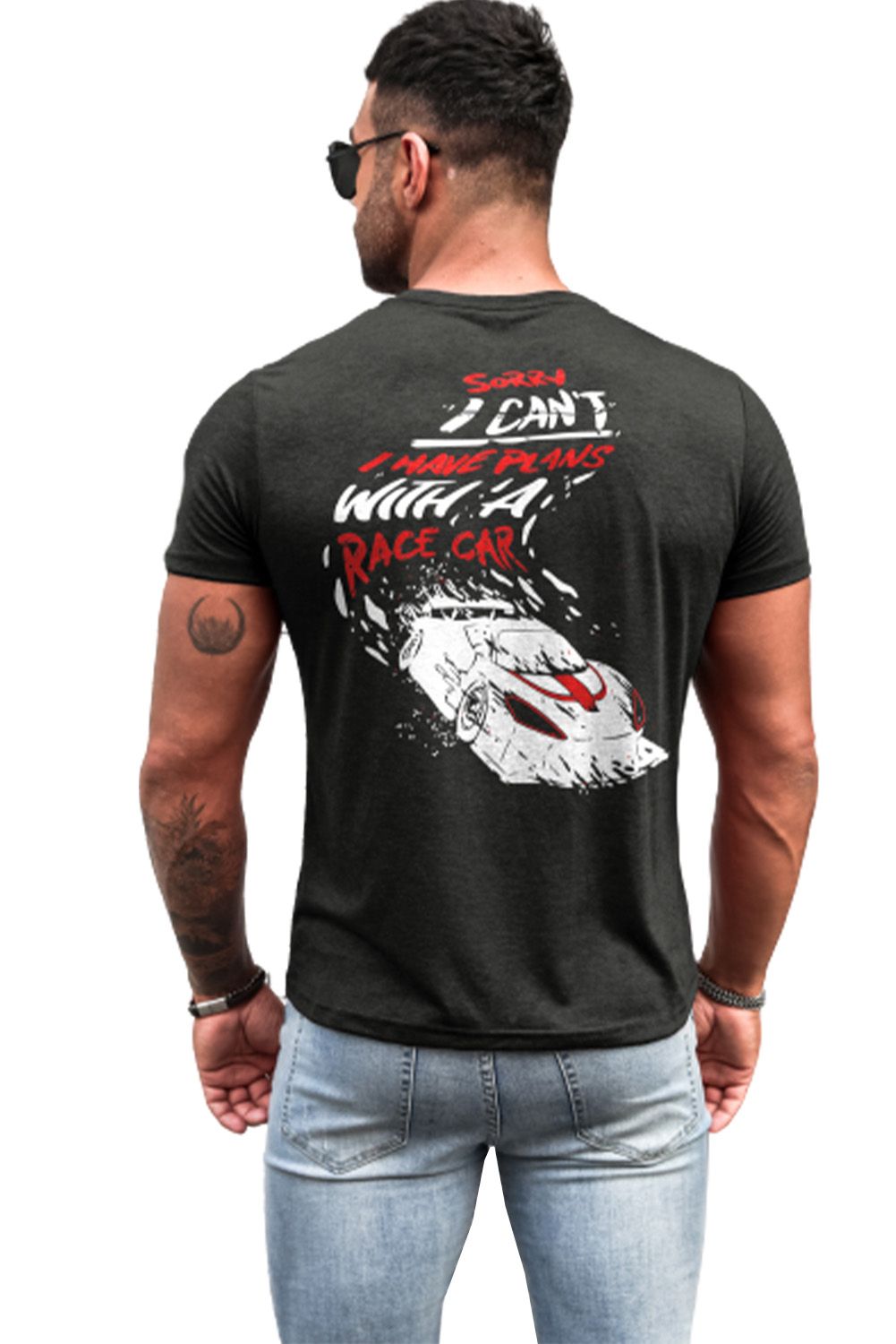 Racing Vehicle Letter Print Slim Fit Men'sGraphic Tee
