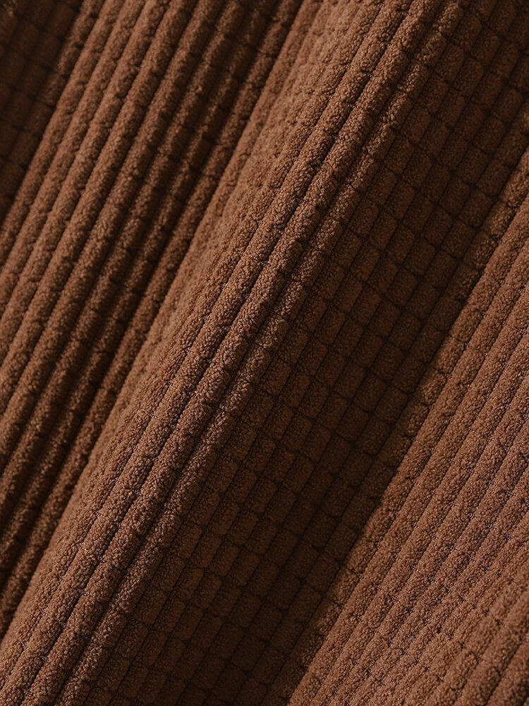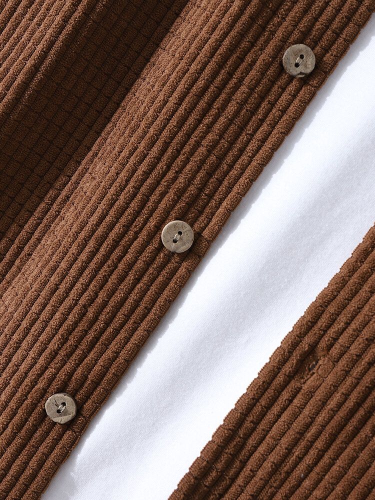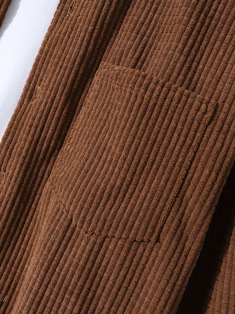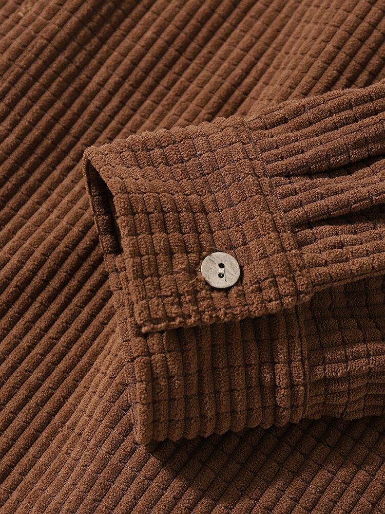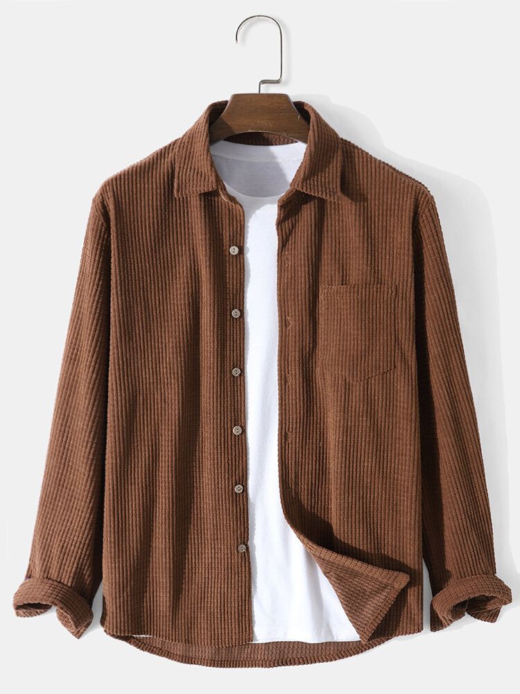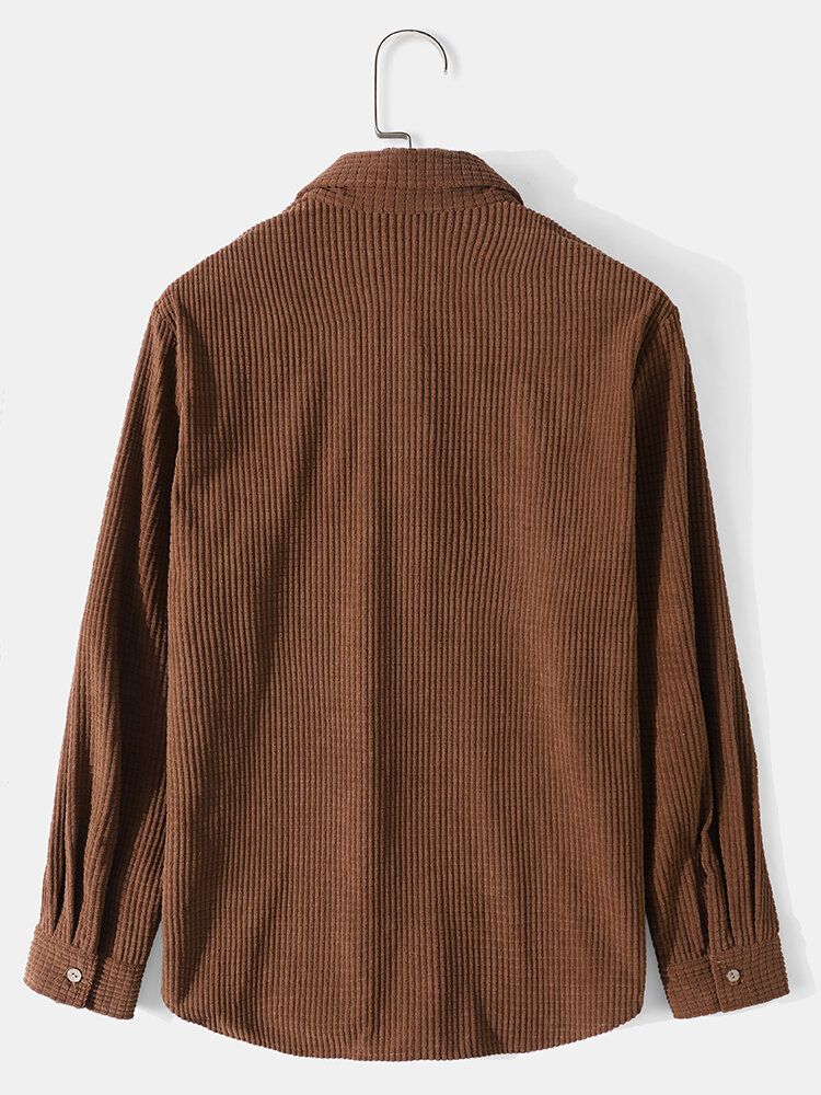 Mens Corduroy Solid Color Button Casual Long Sleeve Shirts With Pocket