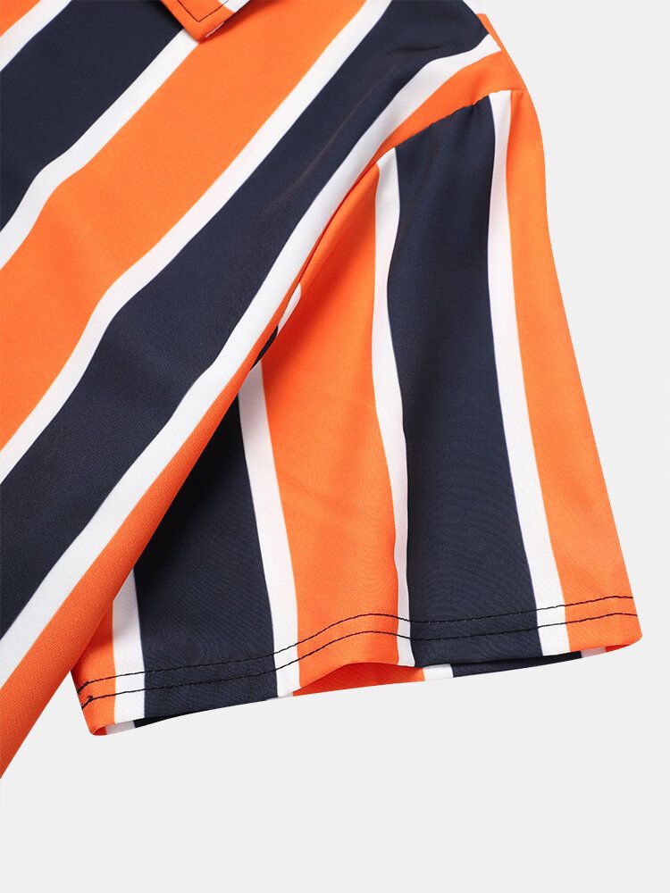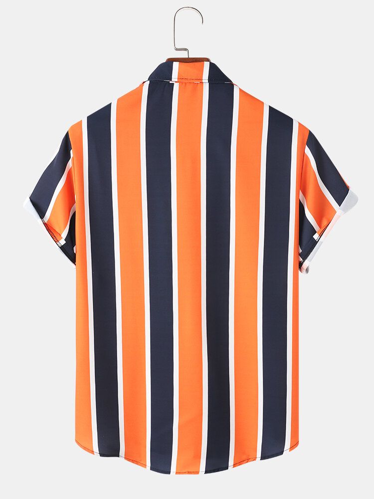 Mens Holiday Wide Striped Button Up Short Sleeve Shirts