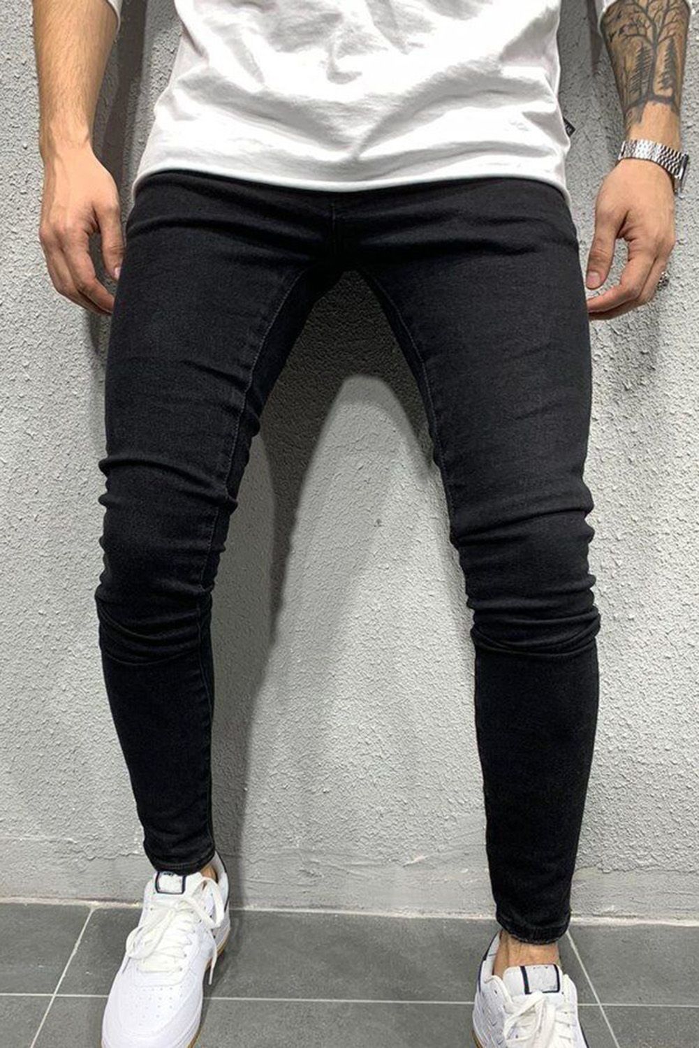 Black Solid Skinny Fit Men's Jeans