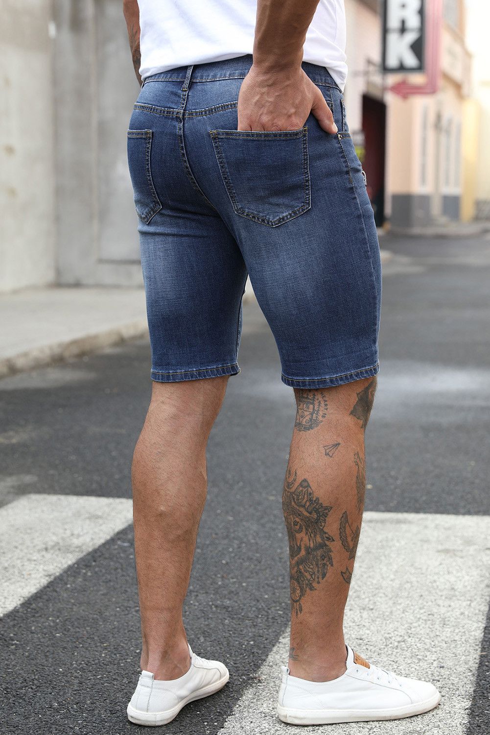 Blue Love Who You Want Print Men's Ripped Short Jeans