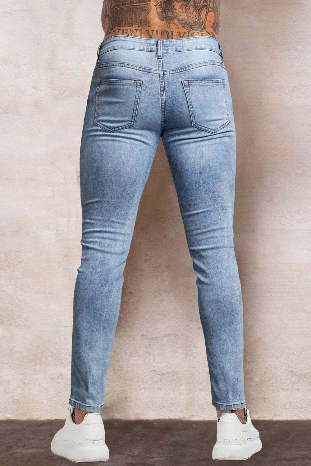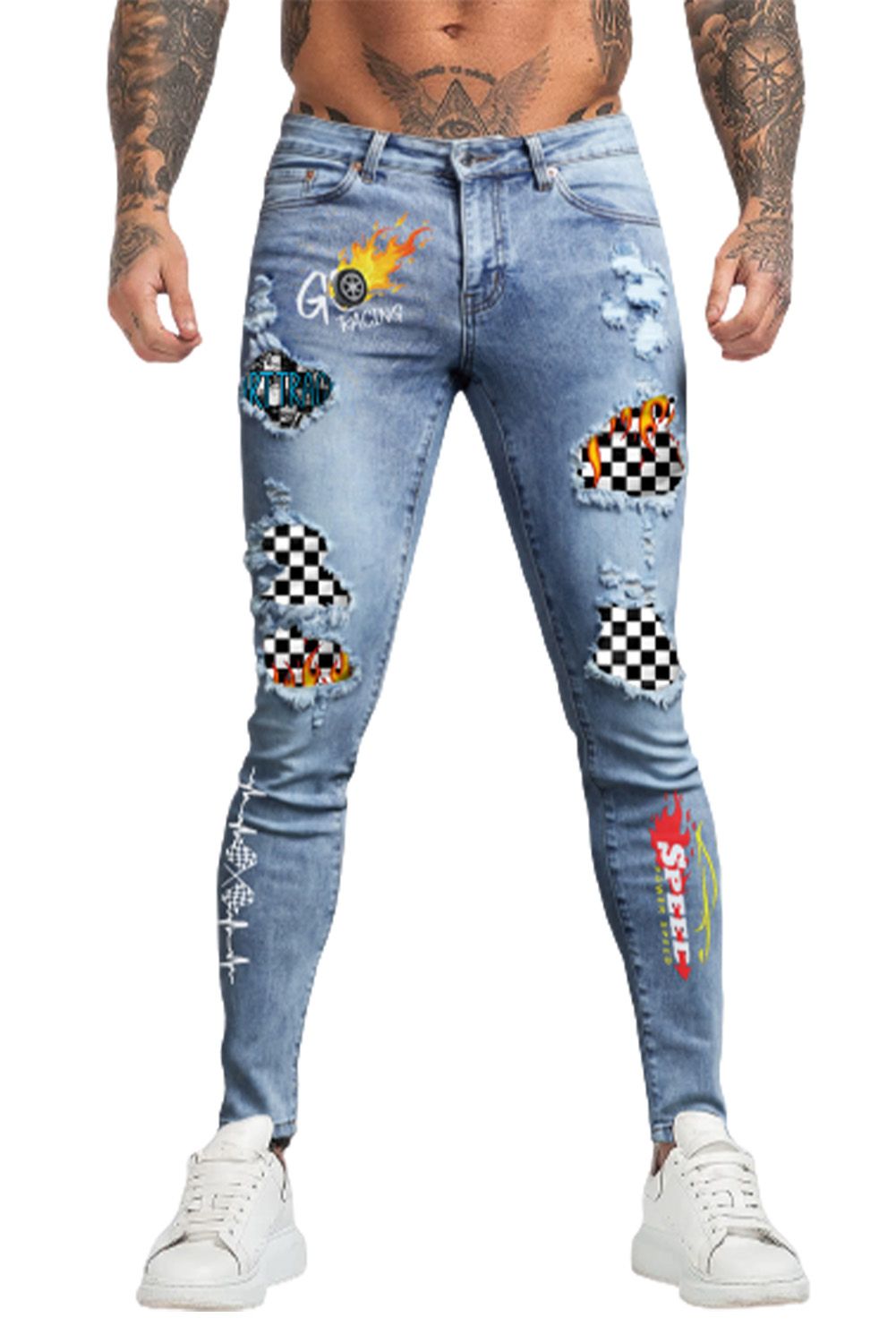 Sky Blue Go Racing Mens Checkerboard Rip & Repair Jeans