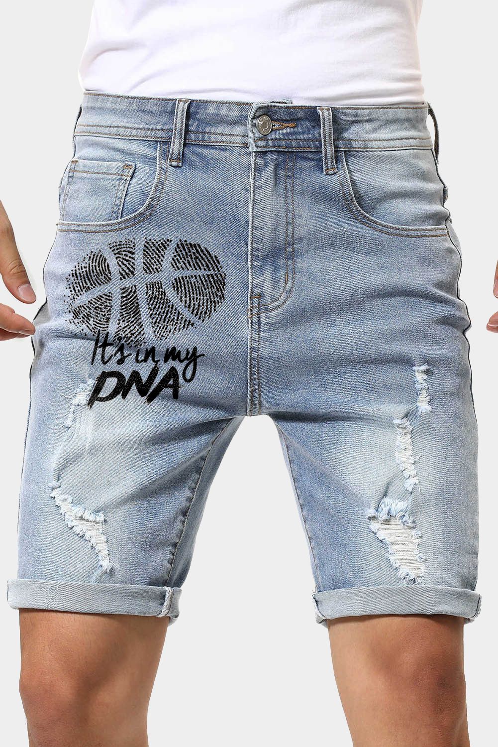 It's In My DNA Basketball Print Ripped Rolled Hem Men's Denim Shorts
