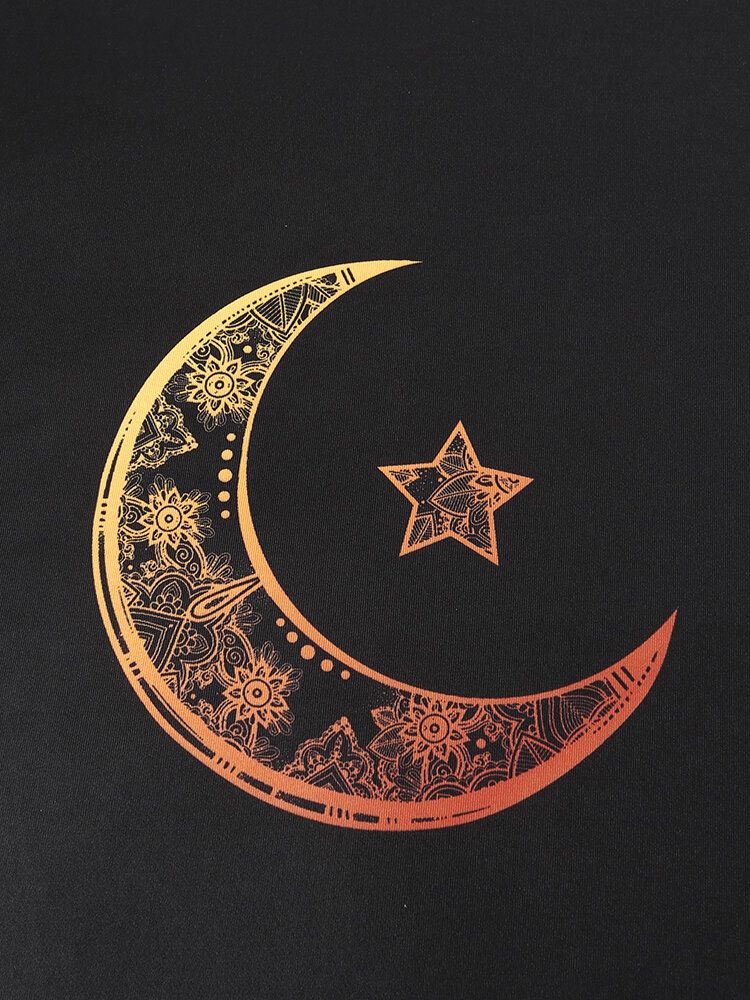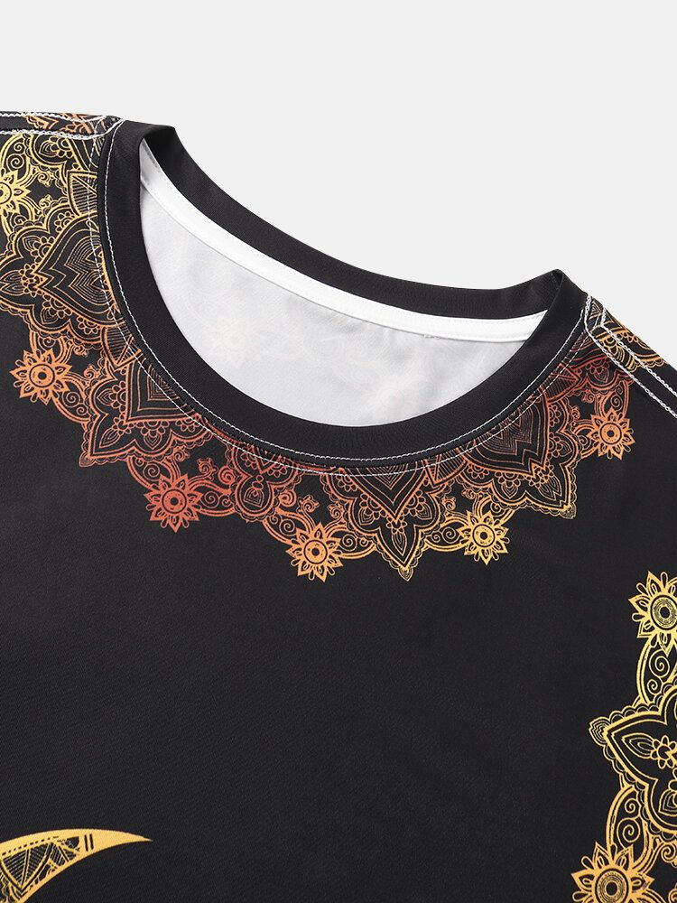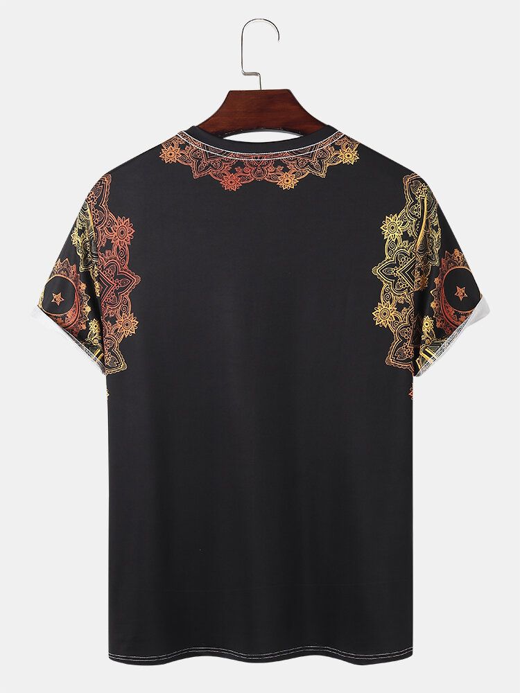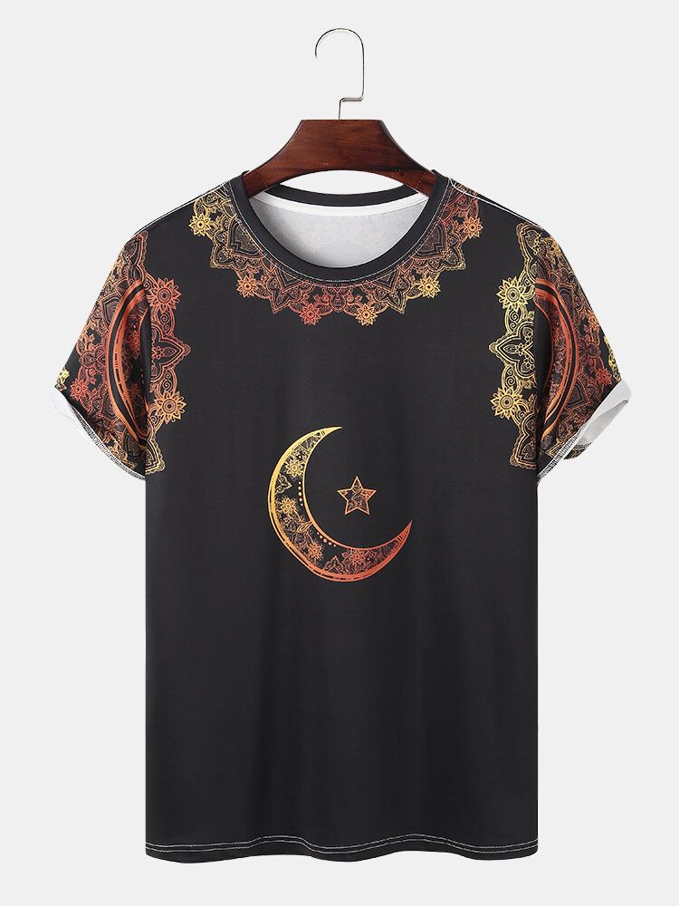 Mens Ombre Star & Moon Print Ethnic Style Short Sleeve T-Shirts