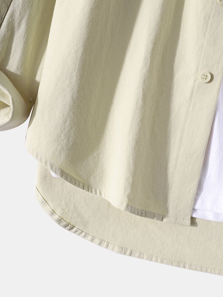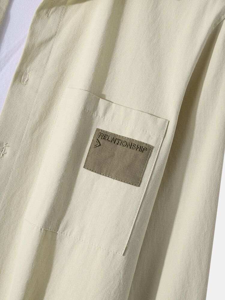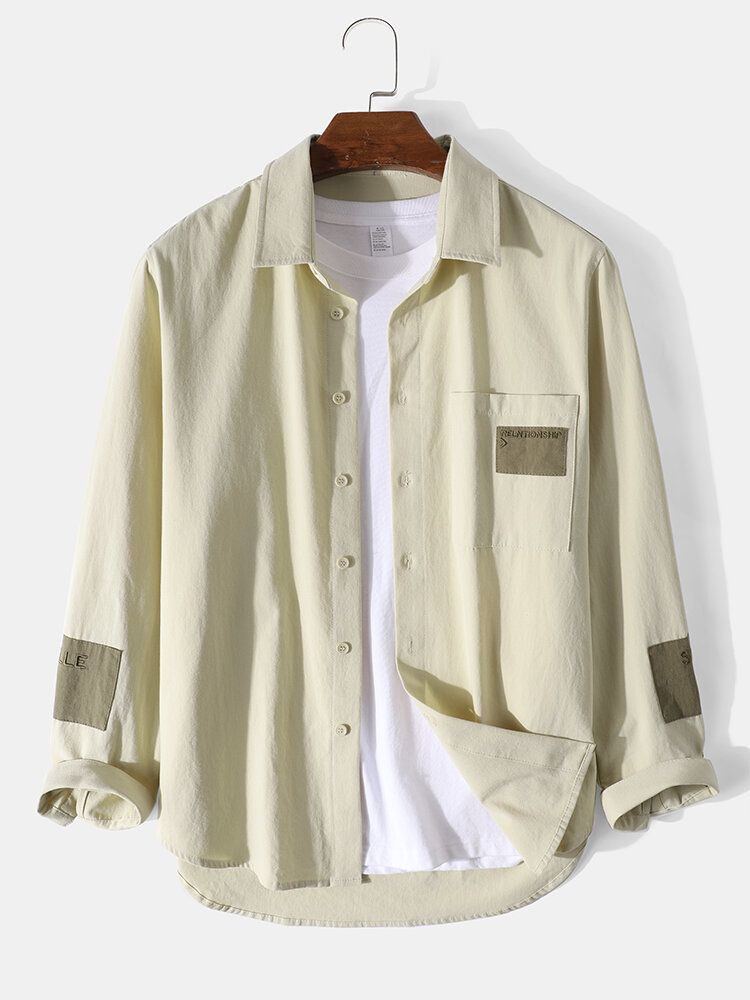 Mens Patchwork Letter Embroidered 100% Cotton Casual Long Sleeve Shirts