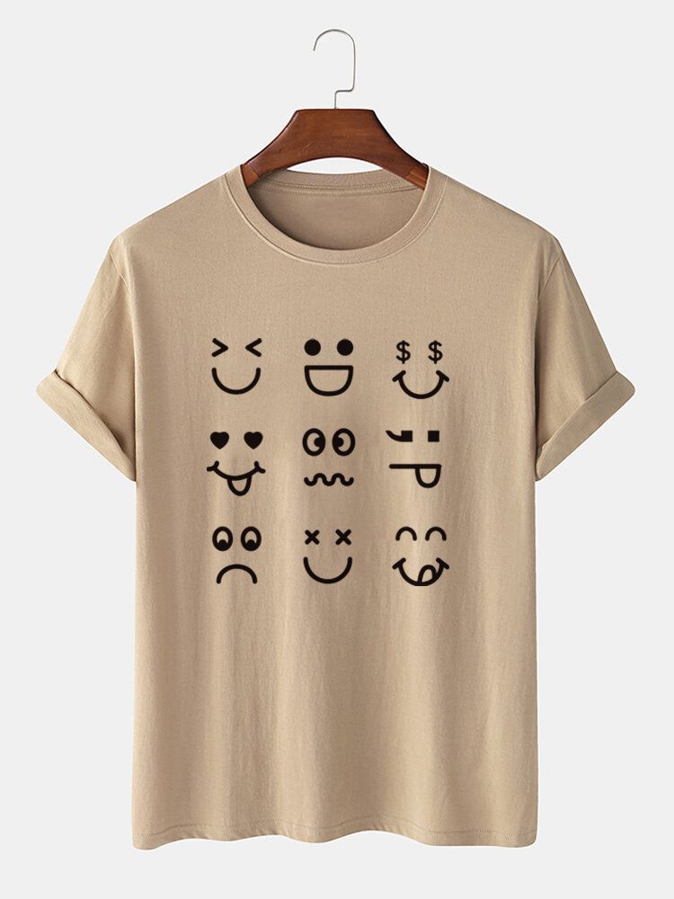 Mens Cartoon Expression Print Crew Neck Cotton Short Sleeve T-Shirts
