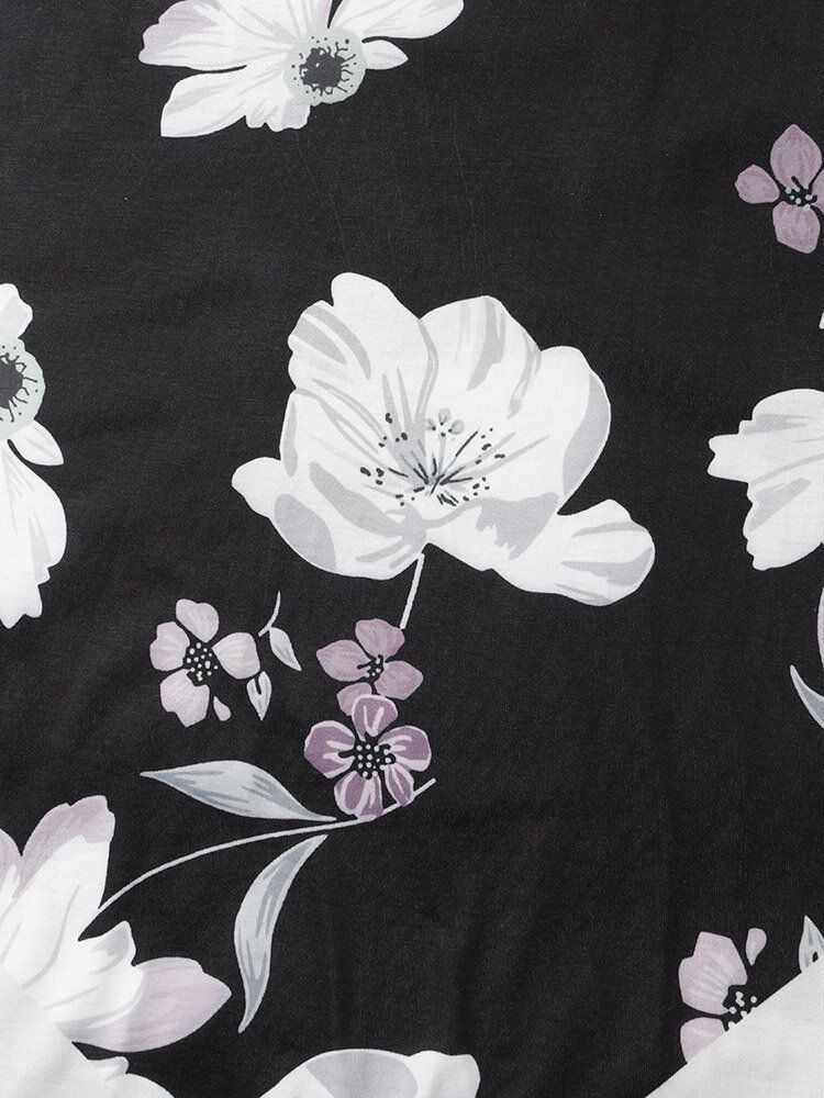Mens Floral Print Black Crew Neck Short Sleeve Street T-Shirt