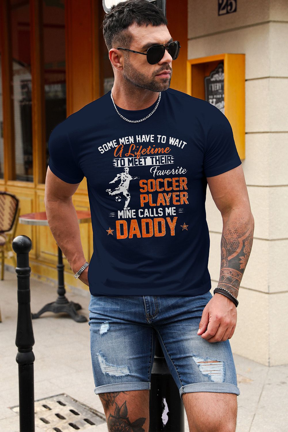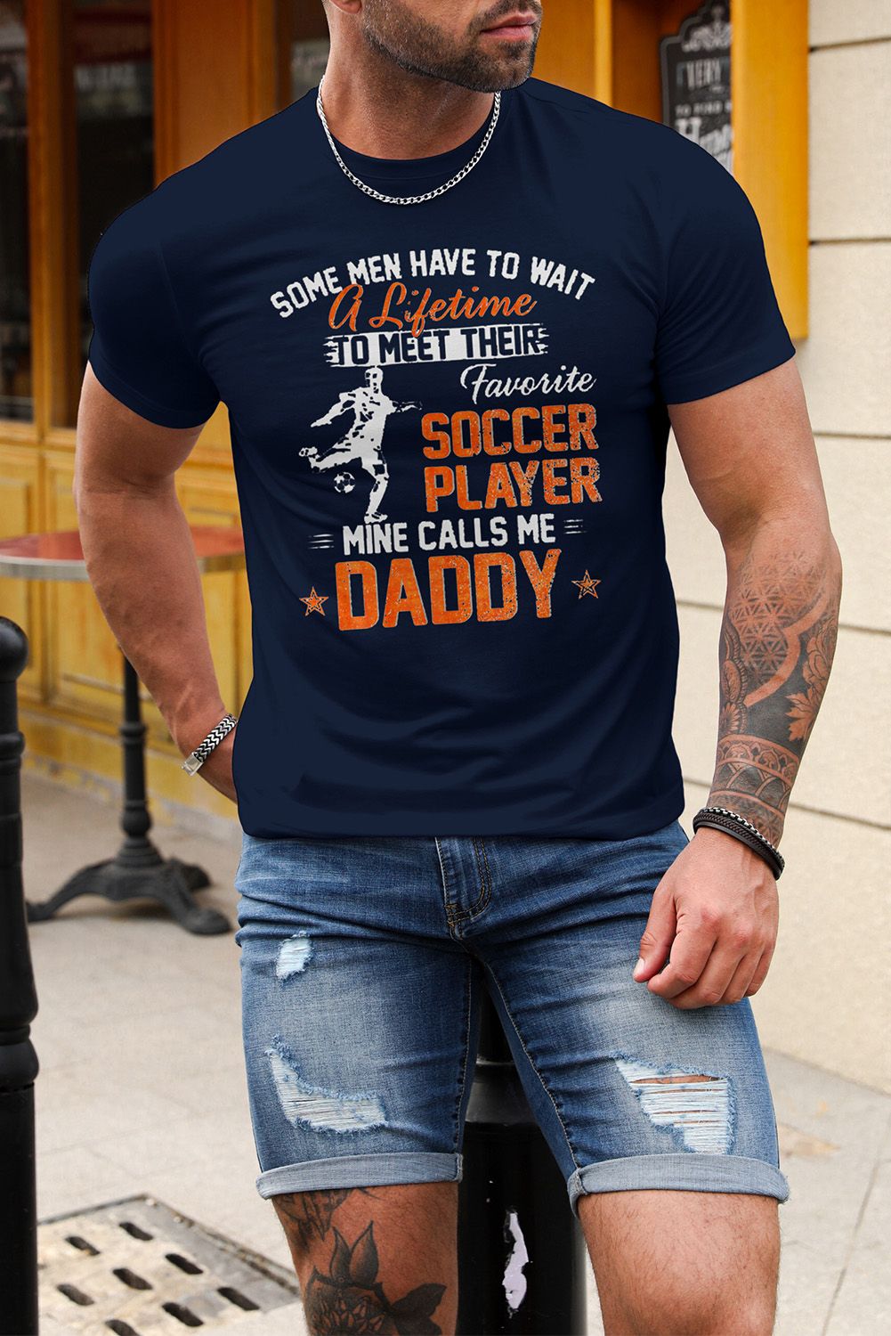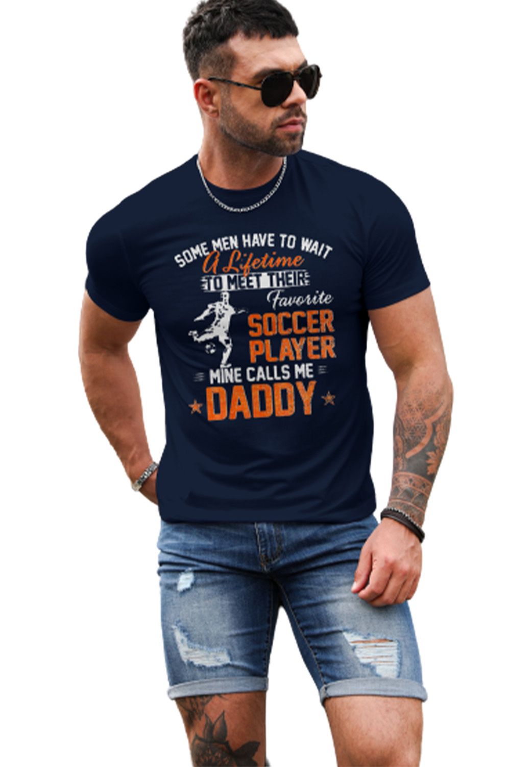 Blue Soccer Player Letter Graphic Print Short Sleeve T Shirt