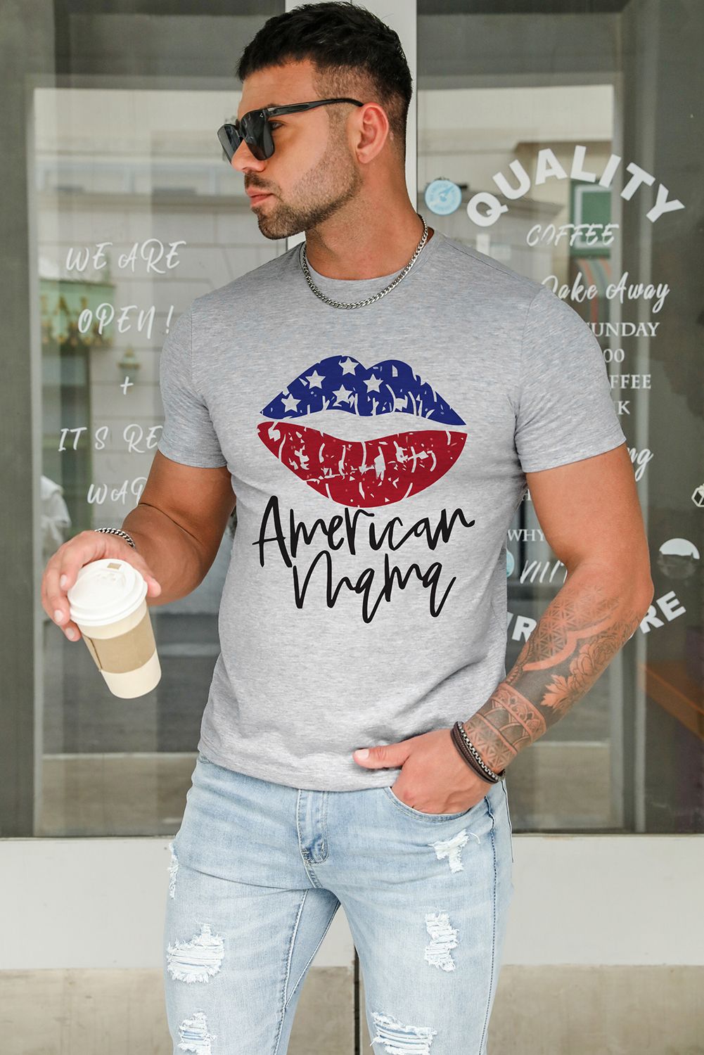 Gray America Mama Flag Lip Print Men's Graphic T-shirt