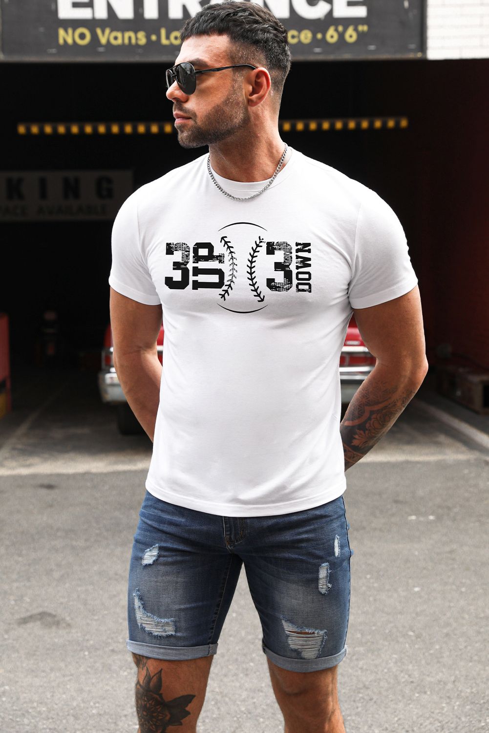 White Baseball Letter Graphic Print Sheath Men's T Shirt