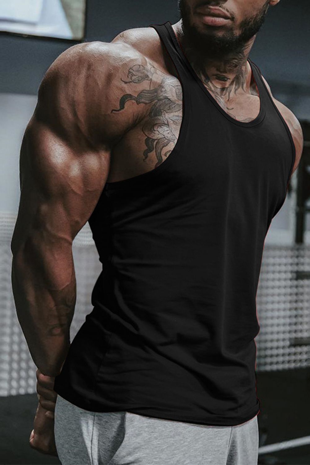 Black Solid Racerback Sleeveless Men's Fitness Vest