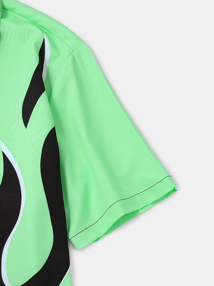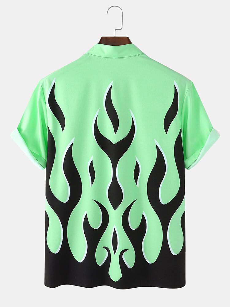 Mens Abstract Flame Print Button Up Short Sleeve Shirt