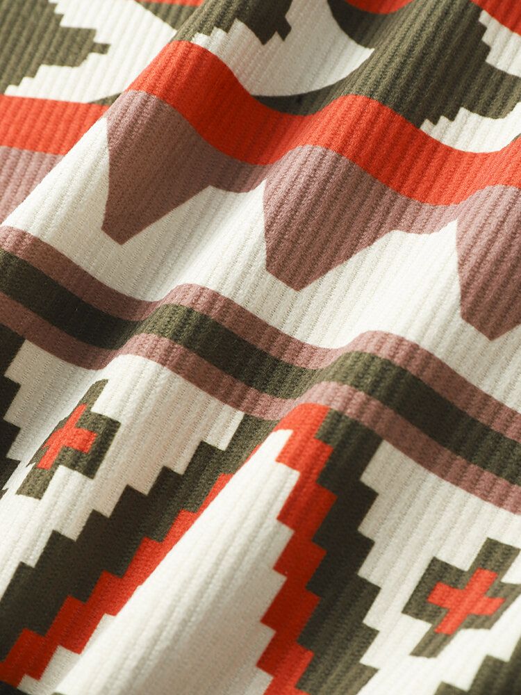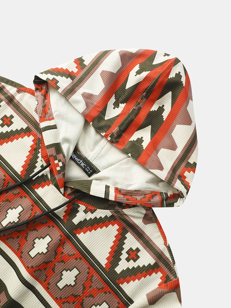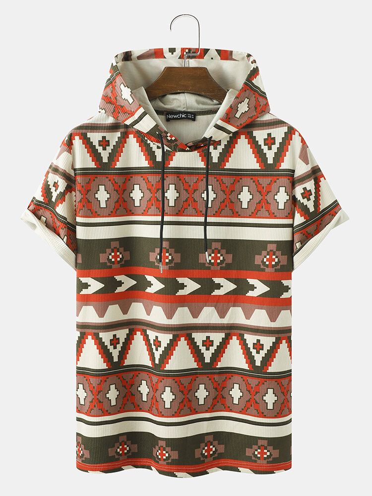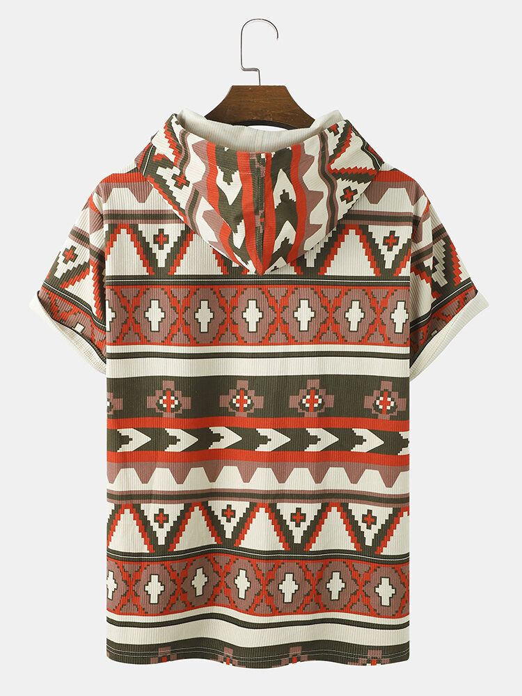 Mens All Over Colorful Geometric Print Corduroy Short Sleeve Hooded T-Shirts