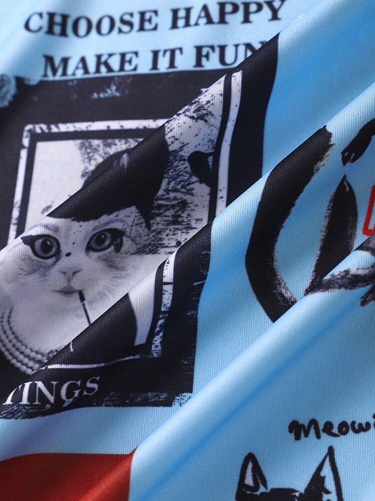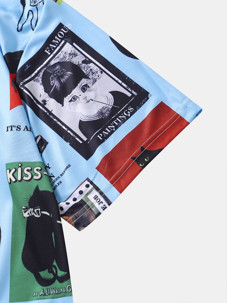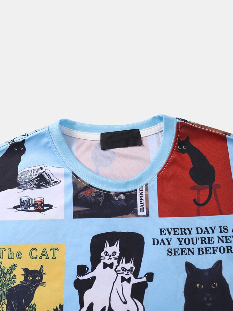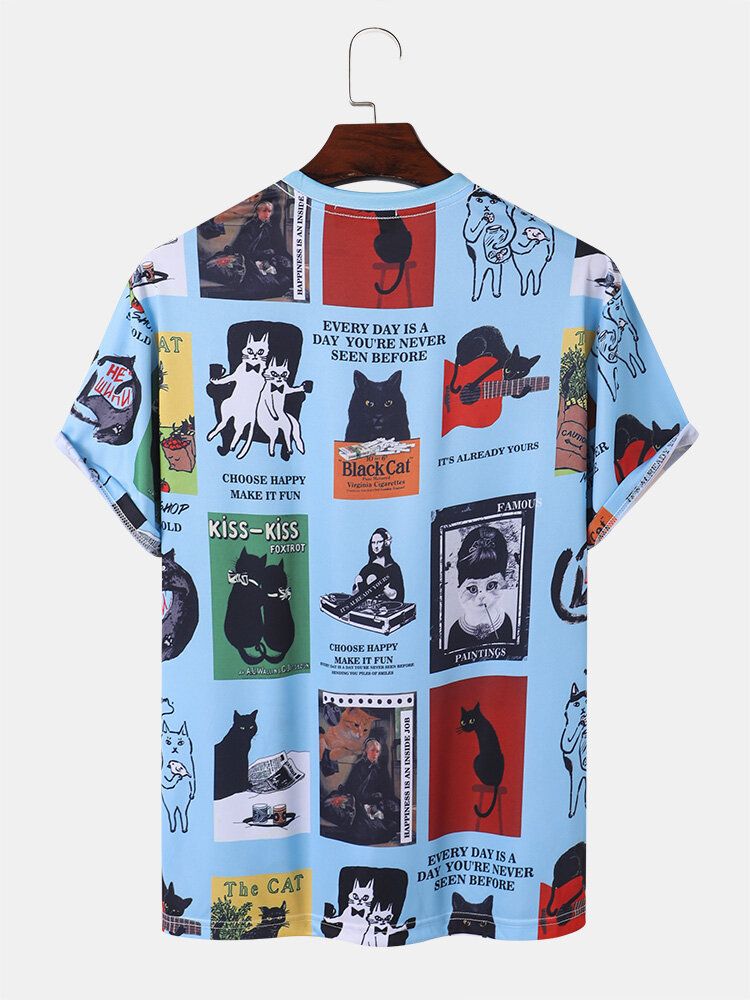 Mens Cat Figure Graphics Crew Neck Short Sleeve T-Shirts